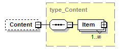 | source | <xs:element name="Content"> <xs:complexType> <xs:sequence> <xs:element name="Item" maxOccurs="unbounded"> <xs:complexType> <xs:sequence> <xs:element name="TimeStamp" type="xs:dateTime"/> <xs:element name="AlsoSeen" type="type_AlsoSeen" minOccurs="0" maxOccurs="unbounded"/> <xs:element name="Title" type="xs:string" minOccurs="0"/> <xs:element name="Artist" type="xs:string" minOccurs="0"/> <xs:element name="FileName"> <xs:simpleType> <xs:restriction base="xs:string"/> </xs:simpleType> </xs:element> <xs:element name="FileSize" type="xs:nonNegativeInteger" minOccurs="0"/> <xs:element name="URL" type="xs:anyURI" minOccurs="0"/> <xs:element name="Type" type="xs:string" minOccurs="0"/> <xs:element name="ExplicitType" type="type_ExplicitType" minOccurs="0"/> <xs:element name="Hash" type="type_Hash" minOccurs="0"/> <xs:element name="UseNetHeader" type="xs:string" minOccurs="0"/> </xs:sequence> </xs:complexType> </xs:element> </xs:sequence> </xs:complexType> </xs:element> |